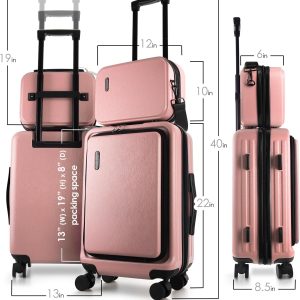 22 Inch Carry On Luggage 22x14x9 Airline Approved, Carry On Suitcase with Wheels, Hard-shell Carry-on Luggage, Pink Small Suitcase, Hardside Luggage Carry On with Cosmetic Carry On Bag