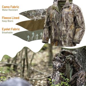 Camo Hunting Jackets for Men, Warm Fleece Lined Hunting Jacket with Hood, Quiet Water Resistant Hunting Clothes