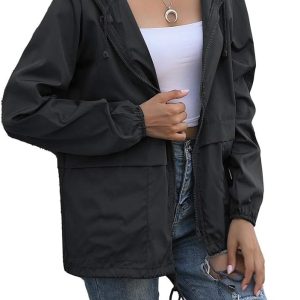 Women’s Waterproof Raincoat Lightweight Rain Jacket Hooded Windbreaker with Pocket for Outdoor